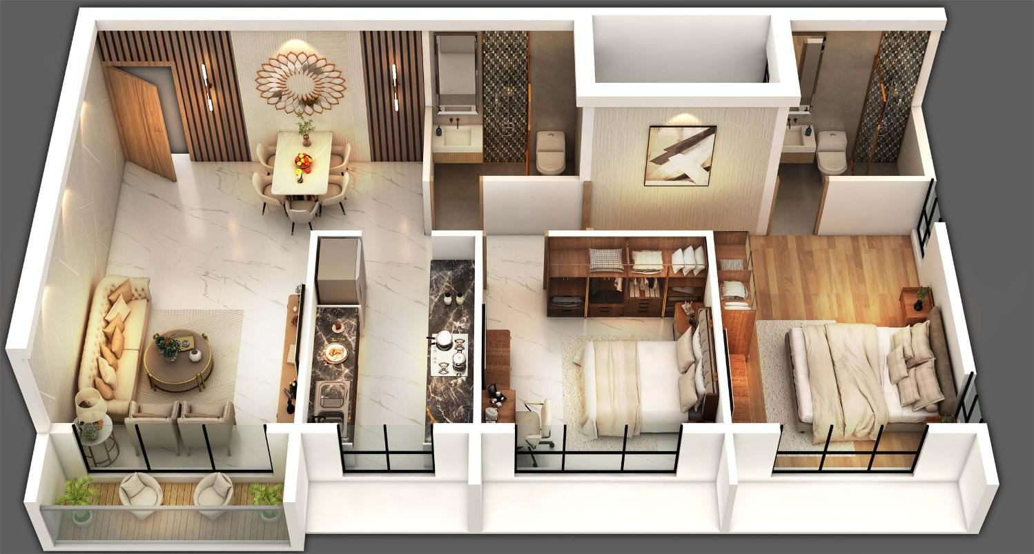 Thoughtfully designed 2 BHK plus size residences offering a perfect balance of functionality, comfort, and spacious living. Every inch is planned to maximize usability while maintaining privacy and openness.